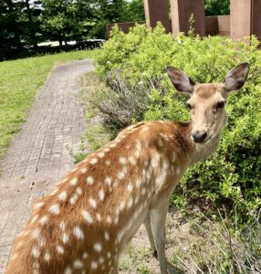 お墓参り中現れた野生の鹿🦌