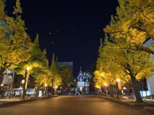ライトアップされた銀杏並木と道庁。晩秋の札幌は、ただただ美しく。